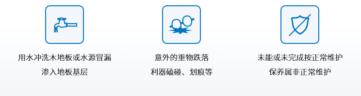 02.嚴(yán)禁地板接觸明火或直接在地板上放置大功率電熱器; 嚴(yán)禁地板接觸強(qiáng)酸性或強(qiáng)堿性物質(zhì)。