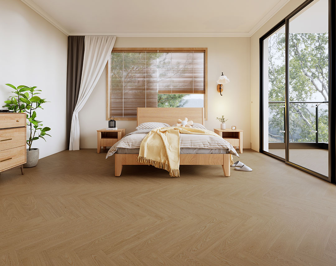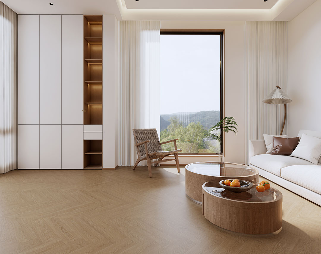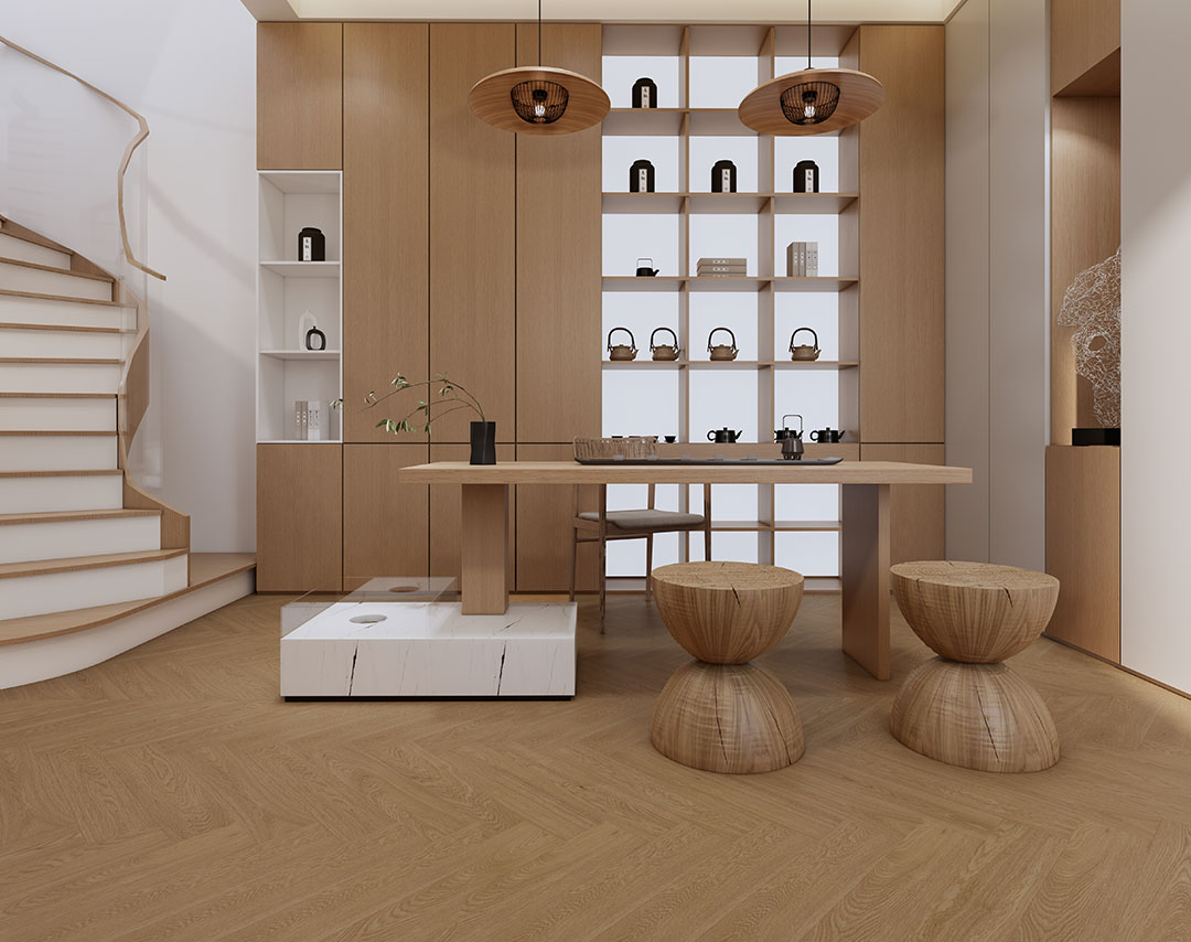 精巧的本色橡木人字拼,自然、質(zhì)樸的美感呼之欲出。人字拼的藝術(shù)拼花形式,讓家居空間在視覺(jué)上更具層次感和立體感。一束光影,一顆南天竹,一絲絲木紋,當(dāng)風(fēng)停在窗邊的時(shí)候,一切都成了療愈的序言。