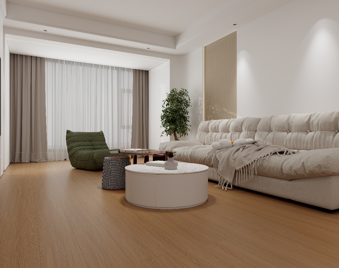 經(jīng)典的原木色,與山直相間的木紋相結(jié)合,營造出一種濃郁的實(shí)木質(zhì)感,為空間帶來一種溫馨而親切的氛圍。這樣的地板鋪設(shè)在家中,不僅能夠提升家居的舒適度,更能夠讓人感受到一種由內(nèi)而外的幸福感,仿佛置身于大自然的懷抱之中。