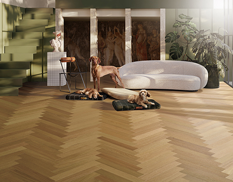 營(yíng)造出明亮、閃耀的效果,在光線的照射下,地板會(huì)顯得格外耀眼,為空間增添一份華麗感, 具有濃郁的金屬質(zhì)感,能夠?yàn)榭臻g帶來一種高貴、典雅的氛圍,同時(shí),木地板的紋理和質(zhì)感也會(huì)在鎏金處理后更加突出,增加了地板的層次感和立體感。
