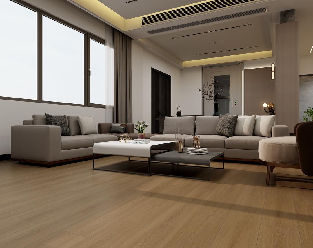 淺咖色地板,以糖霜輕覆烘焙中的杏仁表皮為靈感,在空間界面暈染出物質(zhì)轉(zhuǎn)化的臨界美學(xué)。其表面肌理呈現(xiàn)沙漠巖層與拿鐵拉花交織的拓?fù)浣Y(jié)構(gòu)——3D打印技術(shù)復(fù)刻的微孔質(zhì)感承載著手工刮刀的原始觸痕,在0.5毫米的漸變層中完成從粗陶的拙樸到絲絨的奢華的量子躍遷。當(dāng)日出時的玫瑰金光線穿透智能調(diào)光玻璃,色溫會沿分子涂層析出茶湯般的琥珀光譜,使鈦金屬支架與藤編柜體這對視覺矛盾體,在色彩的中介下達(dá)成材料學(xué)的詩意和解。這種色調(diào)如同經(jīng)過時間陳化的美學(xué)緩沖劑,既消化了現(xiàn)代主義的銳利折線,又為侘寂風(fēng)留白的虛無注入了可觸摸的生命體溫。