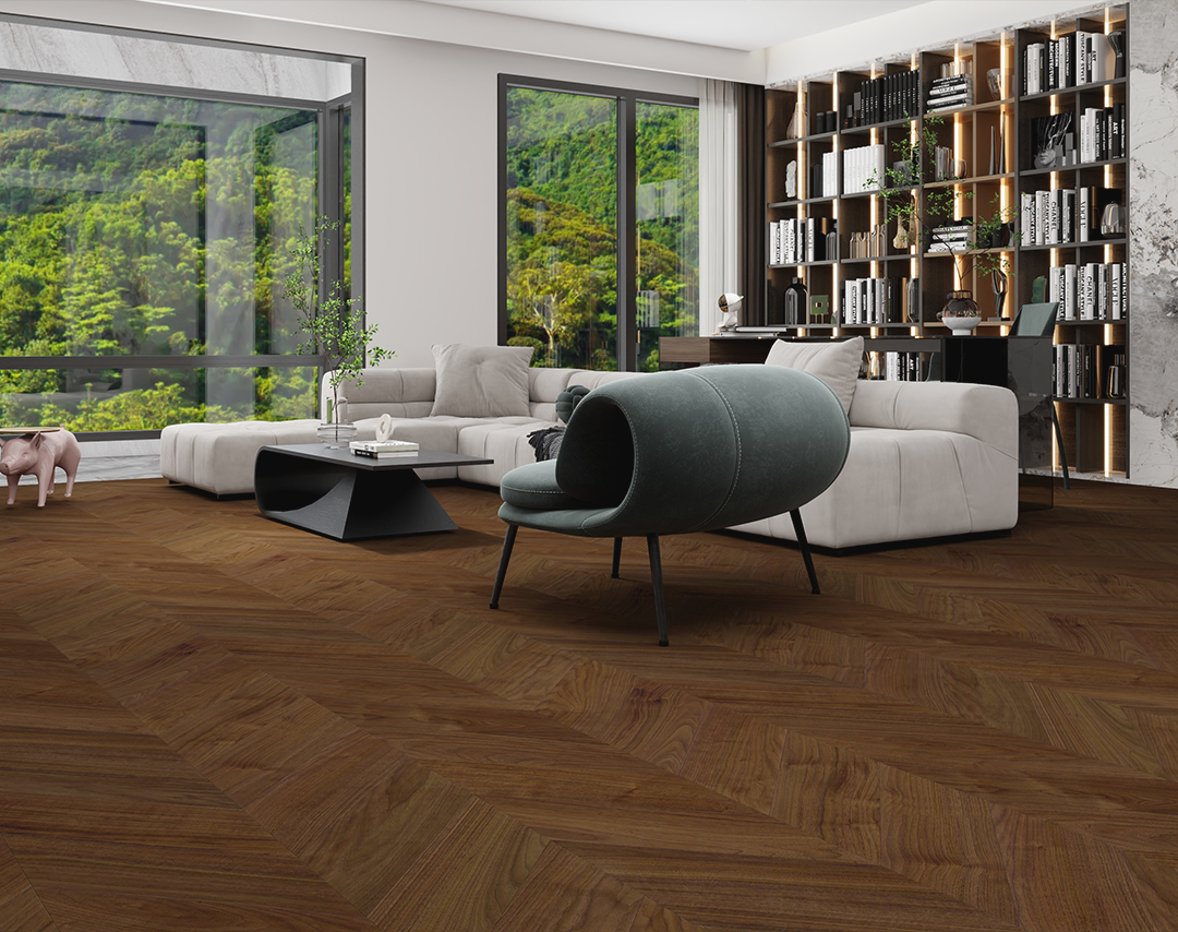 純正的棕色胡桃木色,將奢華質(zhì)感藏匿與木紋之間,藝術(shù)氣息濃郁的魚骨拼設(shè)計,更是展現(xiàn)地板的絕色柔美,溫柔的藝術(shù)魅力,醇厚的棕色質(zhì)感,這款地板將這兩種美豐滿的展現(xiàn)在我們眼前。