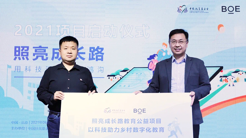 用(yong)科技消(xiao)弭教育(yu)鴻溝 BOE(京東方)一直(zhi)致(zhi)力于教(jiao)育、健康、文化等(deng)領(ling)域的公(gong)益事(shi)業,2014年開啟了“照亮(liang)成(cheng)長(chang)路(lu)”教(jiao)育公(gong)益項目(mu)。2021年,BOE(京東方)攜手中國扶(fu)貧基金會,對(dui)“照亮(liang)成(cheng)長(chang)路(lu)”項目(mu)進行升級,分(fen)為(wei)智慧(hui)教(jiao)室、夢(meng)想(xiang)童行、圓夢(meng)計(ji)劃三個模塊。BOE(京東(dong)(dong)方)“照(zhao)亮成(cheng)長(chang)路”公益項目堅持用科技力量消弭教(jiao)(jiao)育鴻(hong)溝,通(tong)過(guo)提(ti)供智慧(hui)化教(jiao)(jiao)育設備和資源,助力孩子們的教(jiao)(jiao)育和成(cheng)長(chang)之路。2021年,BOE(京東(dong)(dong)方)攜手中國(guo)扶貧基金會,在四川、湖南兩省三縣(xian)30所鄉鎮中心校捐(juan)建(jian)智慧(hui)教(jiao)(jiao)室,提(ti)供智慧(hui)化教(jiao)(jiao)育產品及服務,現已全(quan)部落地并投入使用,逾6000名偏遠(yuan)地區的學(xue)(xue)生因此(ci)受(shou)益。此(ci)外還通(tong)過(guo)教(jiao)(jiao)師賦能培訓項目促進當地教(jiao)(jiao)師成(cheng)長(chang),采用系列(lie)培訓和數字化教(jiao)(jiao)學(xue)(xue)激勵,提(ti)升了縣(xian)域教(jiao)(jiao)師數字化教(jiao)(jiao)學(xue)(xue)水平。